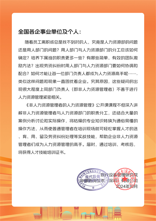 首頁 > 新聞中心>公司動態(tài)>11月20-21日在深圳開班!《非人力資源管理者的人力資源管理》提升班 邀您來參加!!