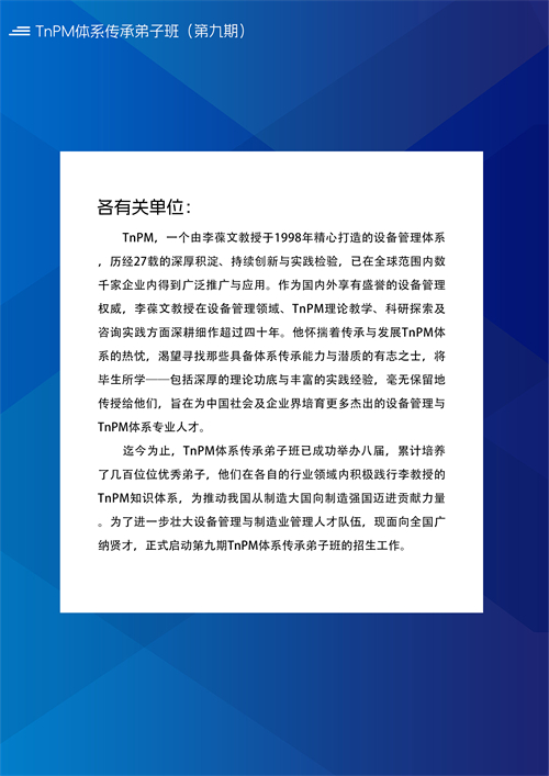 首頁 > 新聞中心>公司動態>就在2025.2.25-28日,TnPM體系傳承弟子班(第九期)在深開講