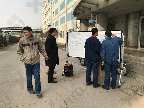 料包架掛著料包可以由拖車拖到濾器下方,震落的廢炭直接收集到料包內