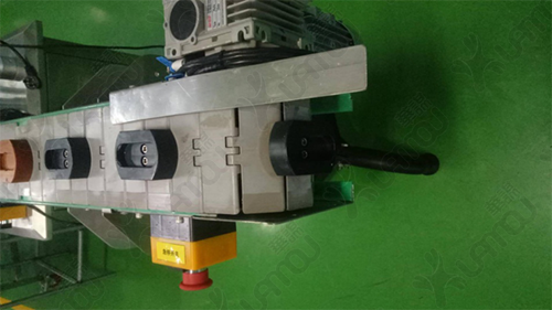 改善前: 收卷夾頭使用長的螺絲經常斷,斷以后會掉落到設備內部造成卡死等想象,經常維修需要耗費大量的時間